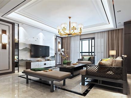98㎡3居室新中式時尚風(fēng)格裝修效果圖