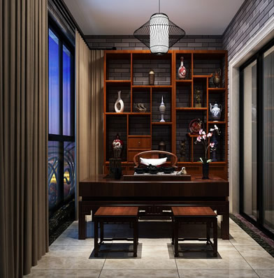 金榜山216平方沉穩(wěn)中式風(fēng)效果圖