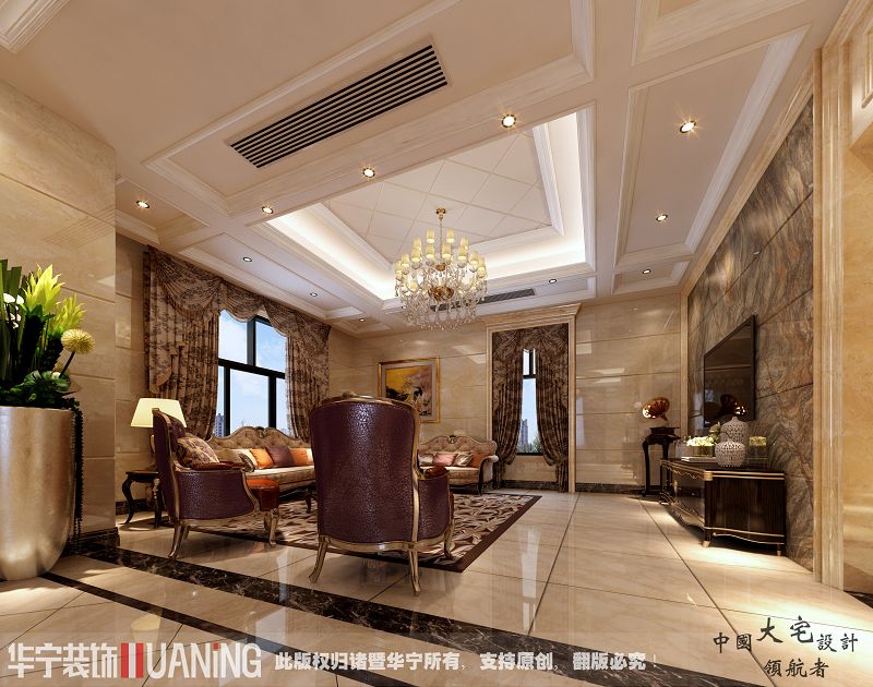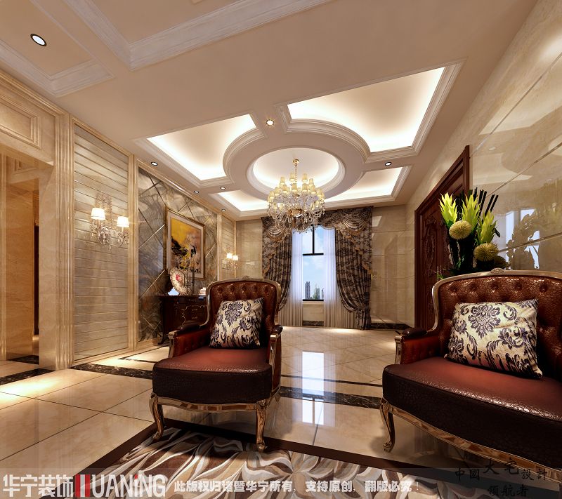 歐式裝修強(qiáng)調(diào)以華麗的裝飾、濃烈的色彩、精美的造型達(dá)到雍容華貴的裝飾效果。歐式客廳頂部喜用大型燈池,并用華麗的枝形吊燈營造氣氛。門窗上半部多做成圓弧形,并用帶有花紋的石膏線勾邊。入廳口處多豎起兩根豪華的羅馬柱,室內(nèi)則有真正的壁爐或假的壁爐造型。墻面最好用壁紙,或選用優(yōu)質(zhì)乳膠漆,以烘托豪華效果。