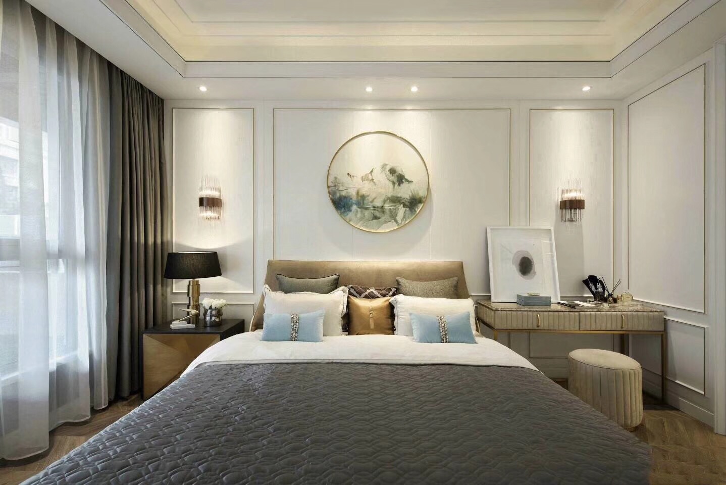 本案例以高品質、設計感、舒適、簡約為風格特點,但是它比極致簡約風格更注重品質和設計感。摒棄傳統(tǒng)的奢華風格,回歸生活本真,家居空間給人時尚簡約、氣質優(yōu)雅且不失溫馨舒適的感覺。