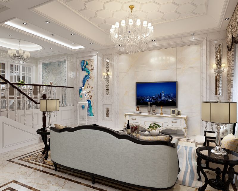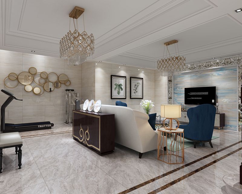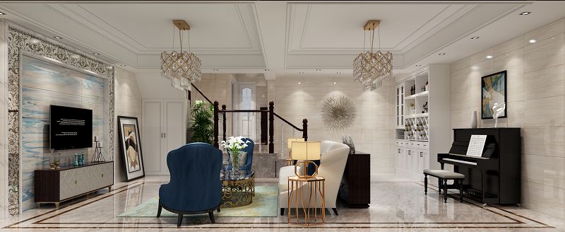 整體空間以清新的歐式風(fēng)格為主,空間顏色以白色與藍(lán)色為基調(diào),使整個空間清新優(yōu)雅而舒適。