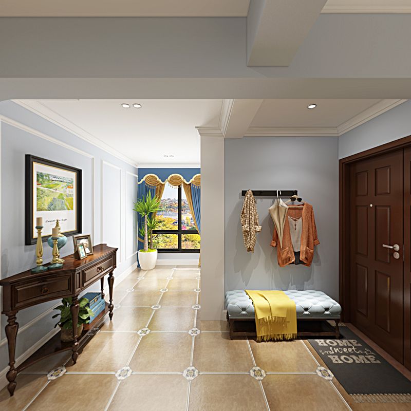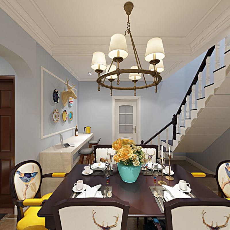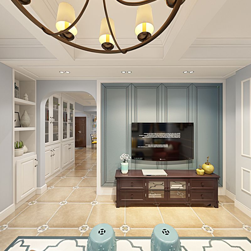 案以作為簡美風(fēng)格,客廳區(qū)域下的空間有著光影對(duì)話、人文載體與自然元素的碰撞,同時(shí),淺色系的窗簾透光性很好,讓客廳的美式風(fēng)格家具顯得慵懶且舒適。用畫中畫的造型將墻壁裝飾出來,并使得整個(gè)空間具有層次感,對(duì)細(xì)節(jié)處要求較高,每一處元素都符合美式風(fēng)格的裝飾主題。餐廳在硬裝設(shè)計(jì)方面沒有用過多的裝飾元素,但地板和墻壁的色調(diào)都是遵循了美式風(fēng)格的懷舊理念。原木桌椅和布藝的裝飾,濃濃的美式風(fēng)情迎面襲來。
