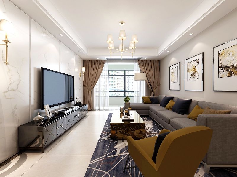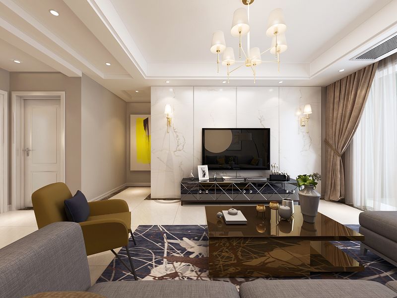 現(xiàn)代風(fēng)格強調(diào)的是功能至上的原則,以最少的材料達(dá)到功能實現(xiàn)的要求。與現(xiàn)代人緊張忙碌的生活相適應(yīng),現(xiàn)代風(fēng)格的客廳只強調(diào)必要的沙發(fā)、茶幾和組合電器裝置,不再有觀賞性強的壁爐和繁瑣的布藝窗簾等過分裝飾。墻面與天花板往往處理成白色,避免小客廳的視覺壓抑,地面采用大理石紋路地磚,美觀實用。