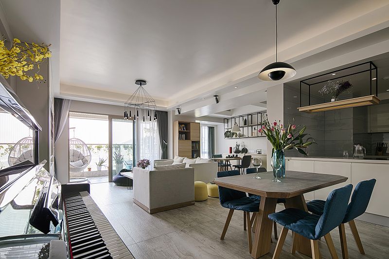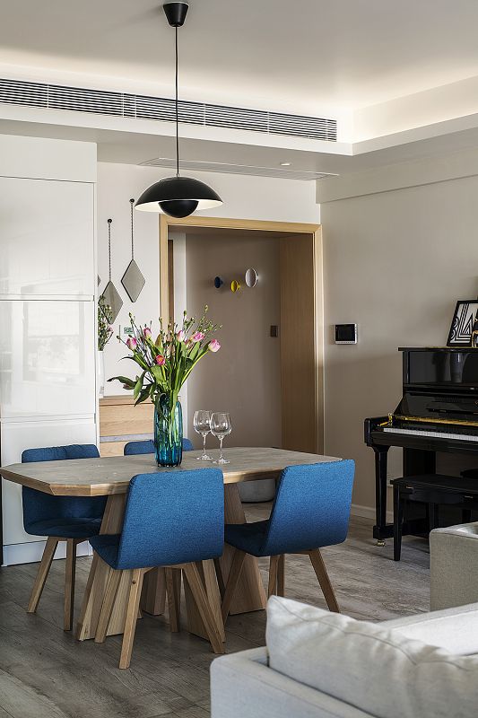 通過木飾面、黑色框架等元素,將整個空間融為一體,看不出刻意裝飾的痕跡,既時尚,又大方。