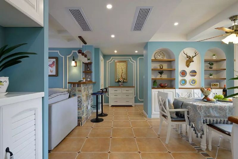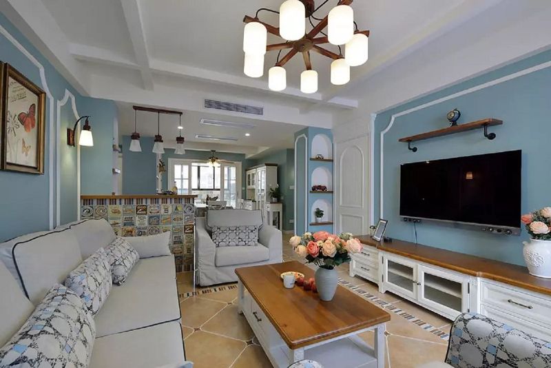實(shí)木的紋理,清新的布藝沙發(fā),淺色的壁櫥,流露出一股濃濃的美式風(fēng)情.實(shí)木桌椅,客廳通透的設(shè)計(jì),豐富了空間的層次感,雙手觸摸于實(shí)木紋理的推拉門上,感受實(shí)木散發(fā)的魅力;倚窗而坐,木香與書香相互融合, 沁人心脾。