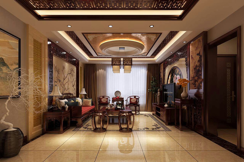 本案就致力于做“雅”的中式設(shè)計。 從入戶開始,首先映入眼簾的便是沉穩(wěn)大氣的博古架,不僅宣示了整個空間古樸大氣的基調(diào),更是展示了主人不俗的文化品位。開闊的空間,莊重的顏色,渾厚的質(zhì)感都展示著中式風(fēng)格帶來的氣派與尊貴。進入客廳,羅漢床,圈椅等典型的中式家具處處透露著古色古香,閑暇時光,三五好友,一起品茗賞花,談古論今,這生活怎一個“雅”字了得。