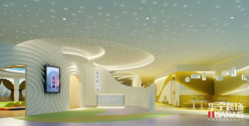早教幼兒園設(shè)計裝修效果圖,夢幻星空的設(shè)計,讓小朋友身處星空中。