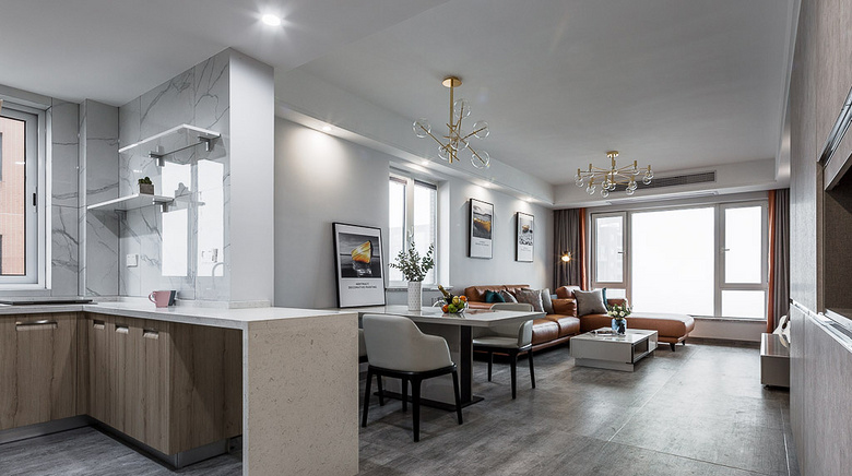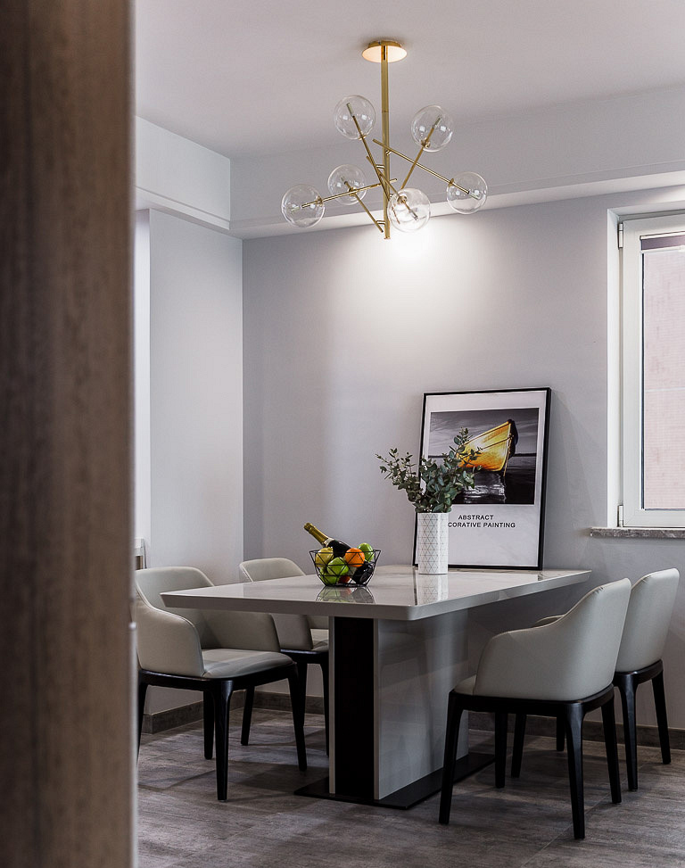 整體以簡約風(fēng)格的裝修演繹時(shí)尚現(xiàn)代的居家感受;空間中多采用透明玻璃的元素,在完備的格局配置中,保有空間串聯(lián)并平衡出獨(dú)立性。