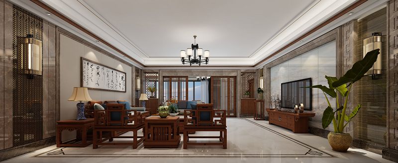 本案在傳統(tǒng)中式的基礎(chǔ)之上進(jìn)行了簡化,用石板和瓷磚填充了古典中式獨(dú)有的木雕,整個(gè)空間演變的清新淡雅,加上中式的字畫讓空間更加舒適柔和。