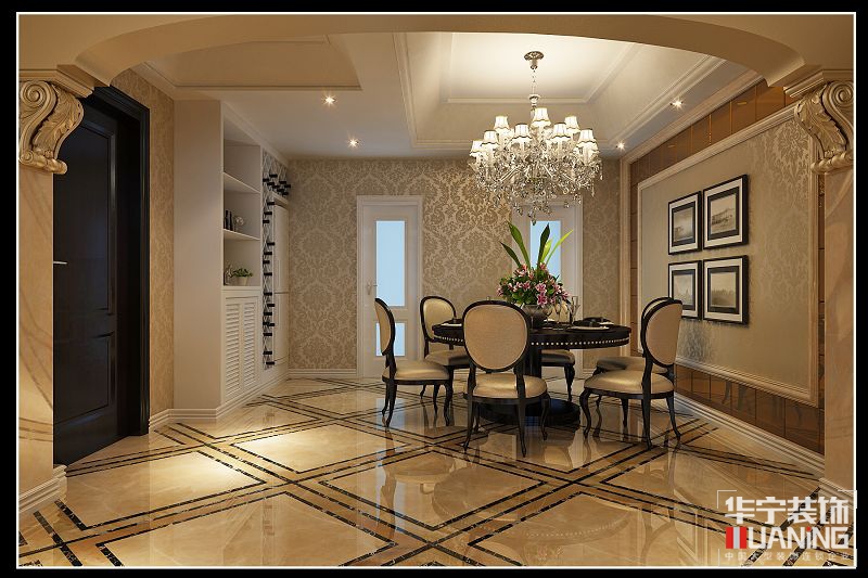 餐廳布置,一抹優(yōu)雅的藍調(diào)在華麗的空間中彰顯出屋主的品味。