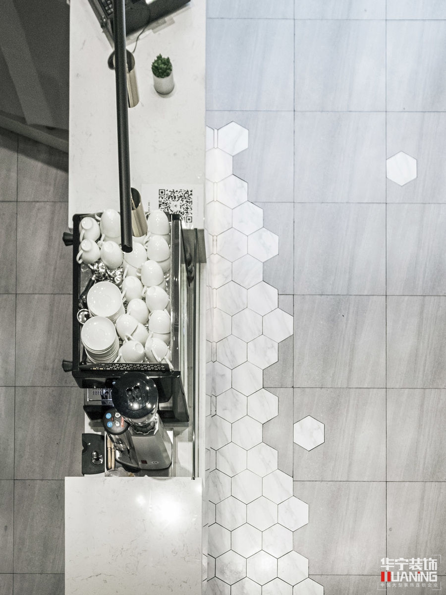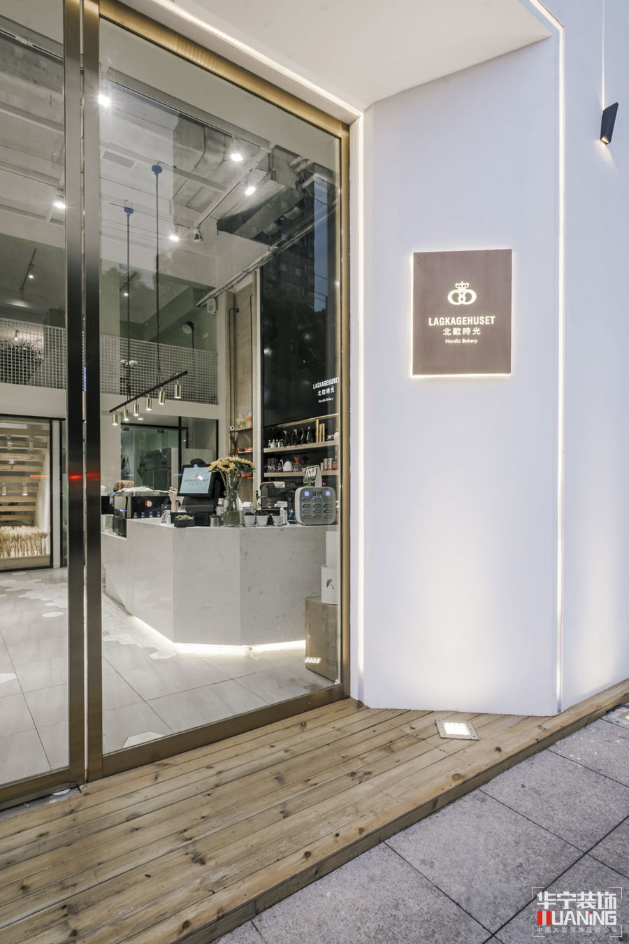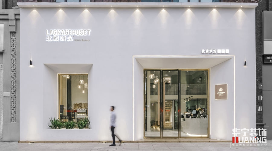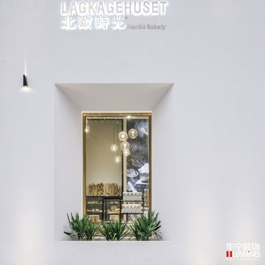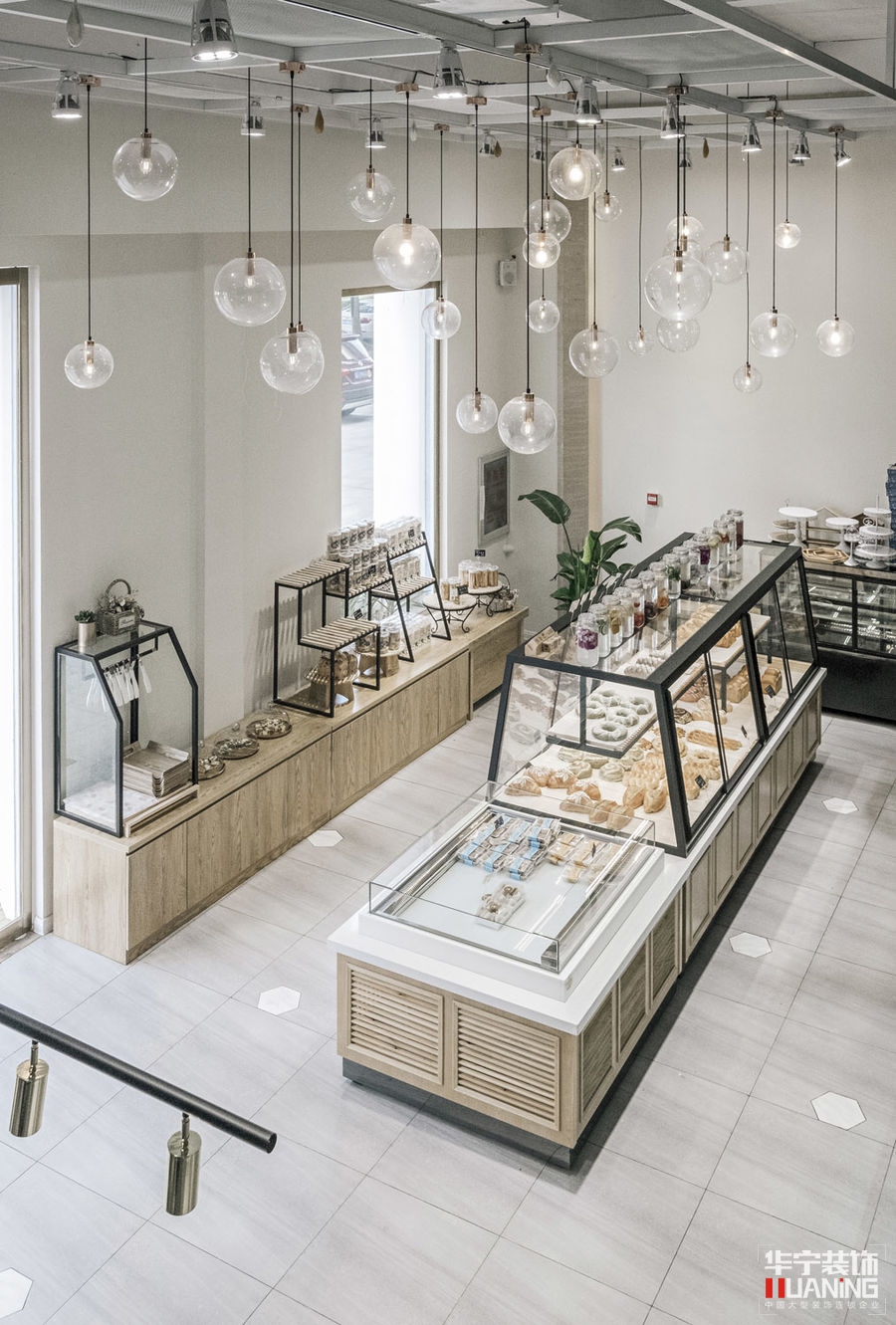 烘焙店整體以簡(jiǎn)潔明了的設(shè)計(jì)手法,用白色作為基調(diào),明亮、整潔、純凈。店面與周邊喧囂浮躁的環(huán)境剝離,大部分的留白像一張動(dòng)態(tài)畫布,記錄來來往往的人物和光影。