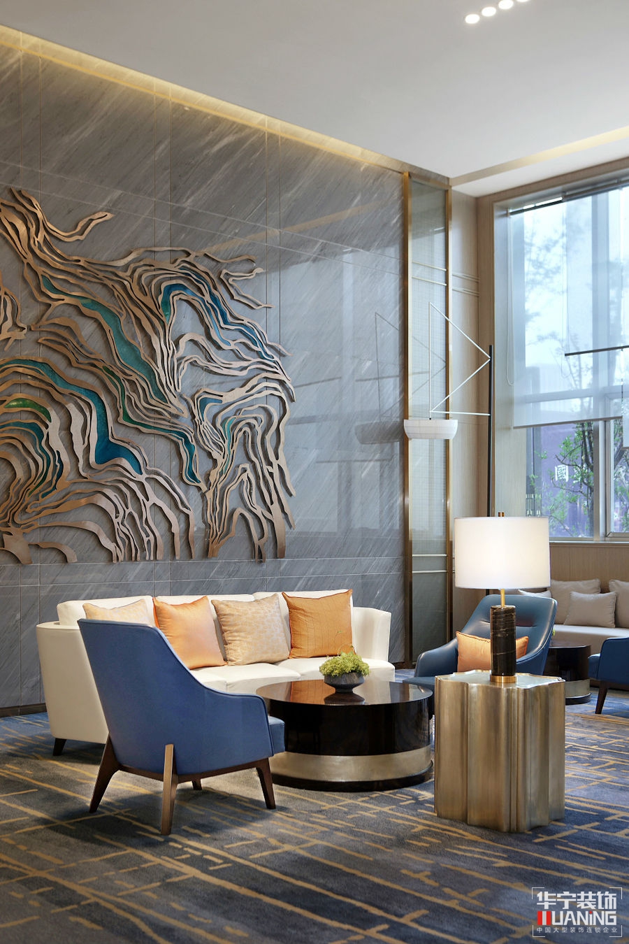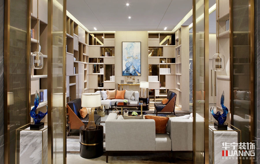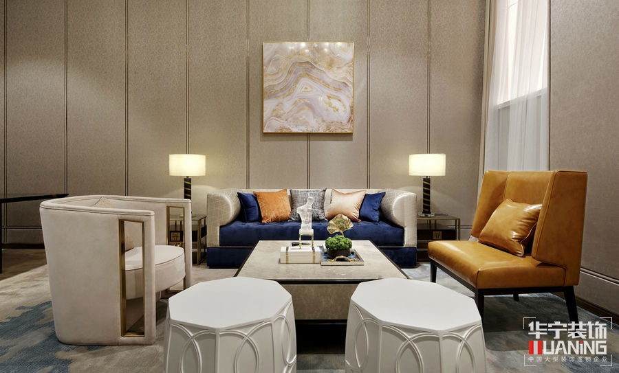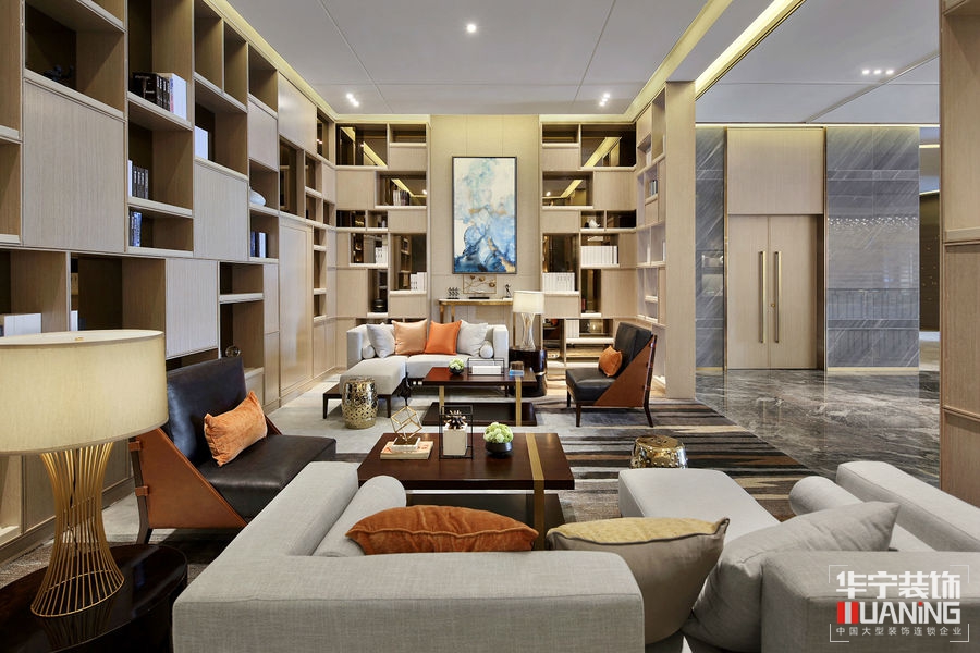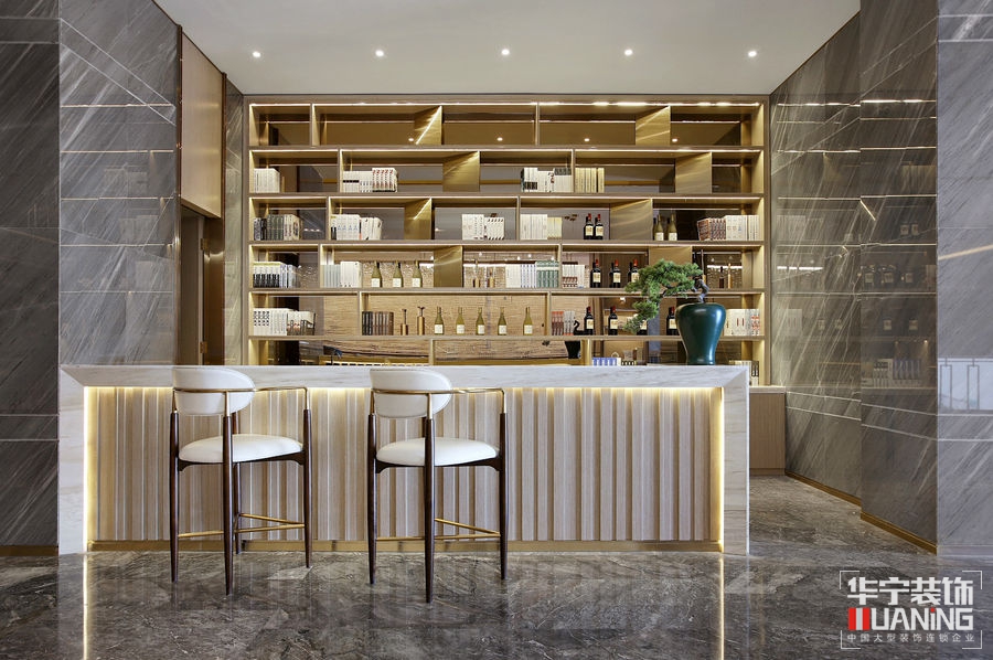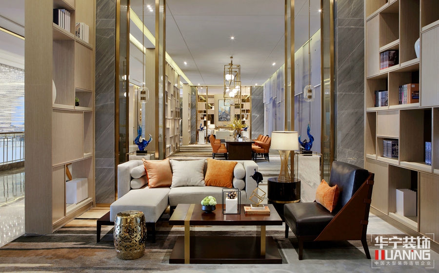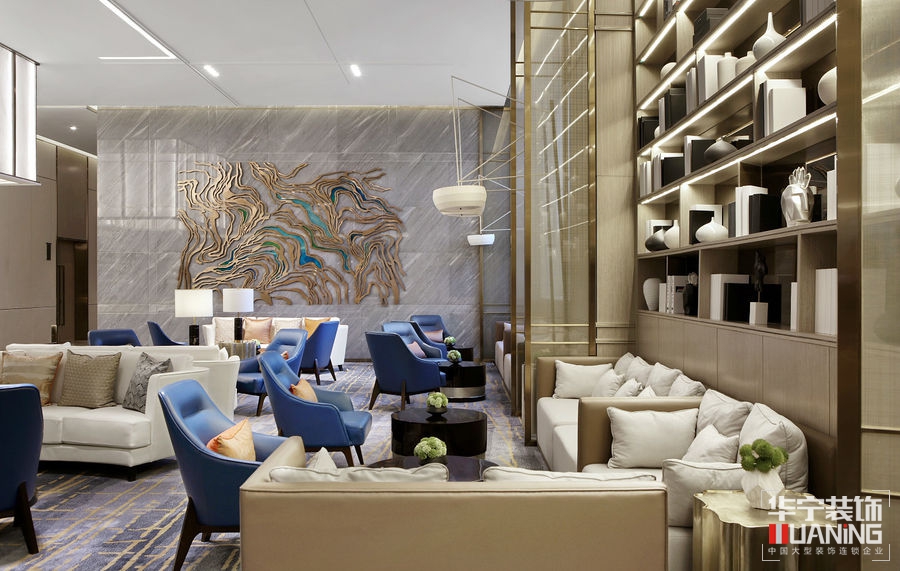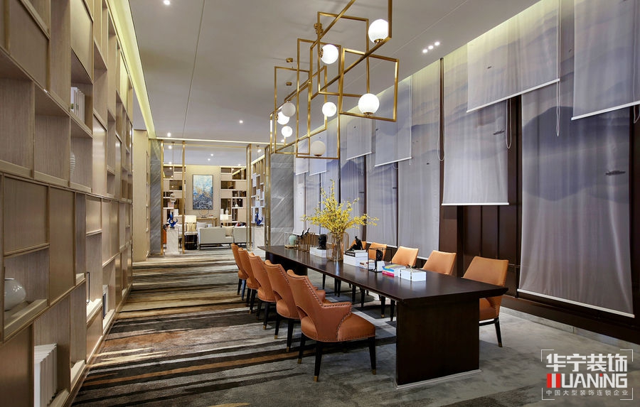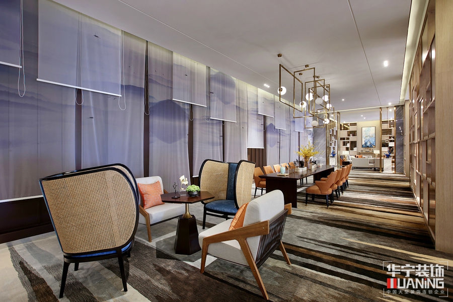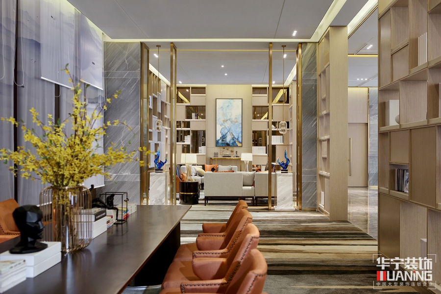 如流水一般清澈雋永,又如陽(yáng)光一般明媚多情。洽談區(qū)以胡桃木飾面為主,保留貴雅去其繁麗,局部采用皮革、大理石、拉絲古銅作以點(diǎn)綴。