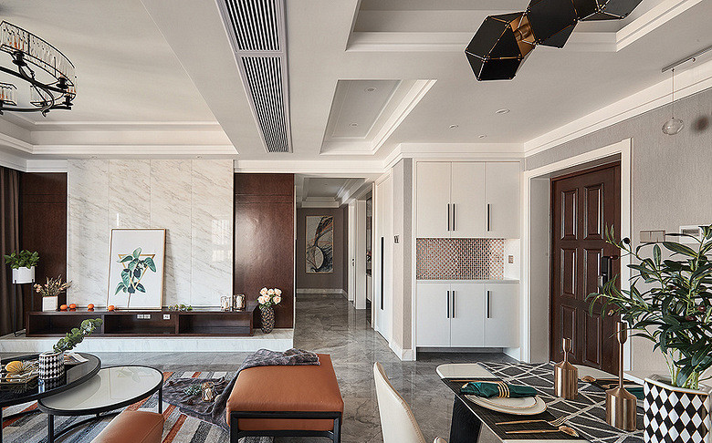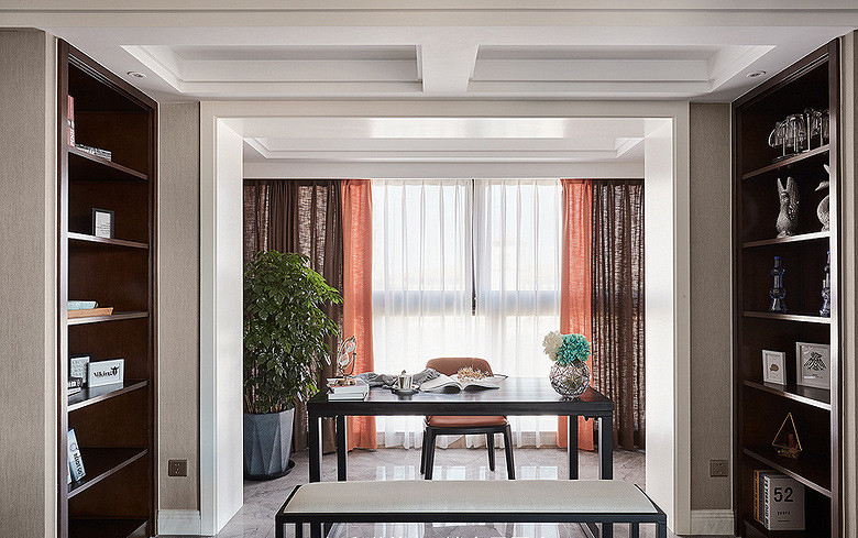 設(shè)計(jì)師用灰色調(diào)打造不經(jīng)意的雅致,鮮活的綠色悅動(dòng)在空間中宛如一片片綠洲,用盡一生努力生長(zhǎng),在空間的山河中自由膨脹。