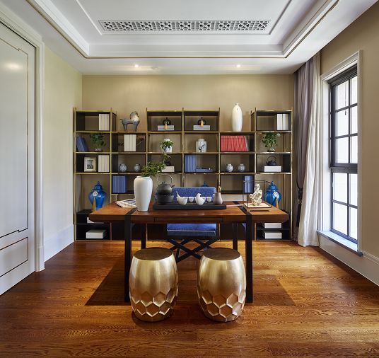 新中式風(fēng)格在設(shè)計(jì)上延續(xù)了明清時(shí)期家居配飾理念,提煉了其中經(jīng)典元素并加以簡化和豐富,在家具形態(tài)上更加簡潔清秀,同時(shí)又打破了傳統(tǒng)中式空間布局中等級(jí)、尊卑等文化思想,空間配色上也更為輕松自然。