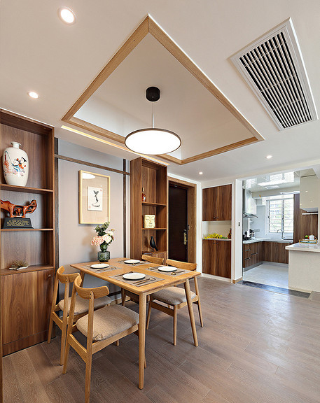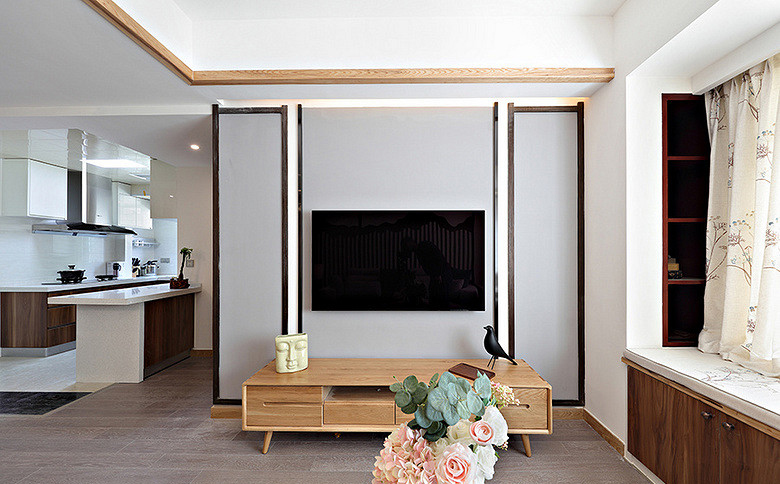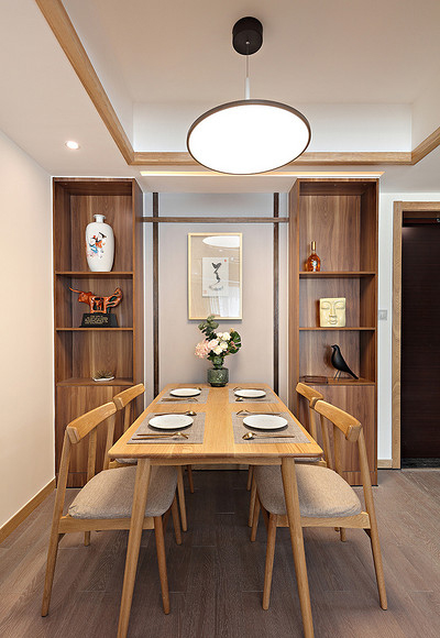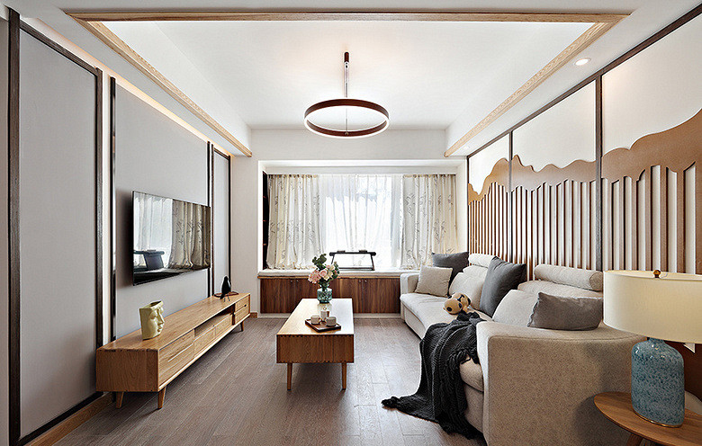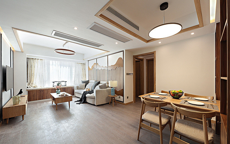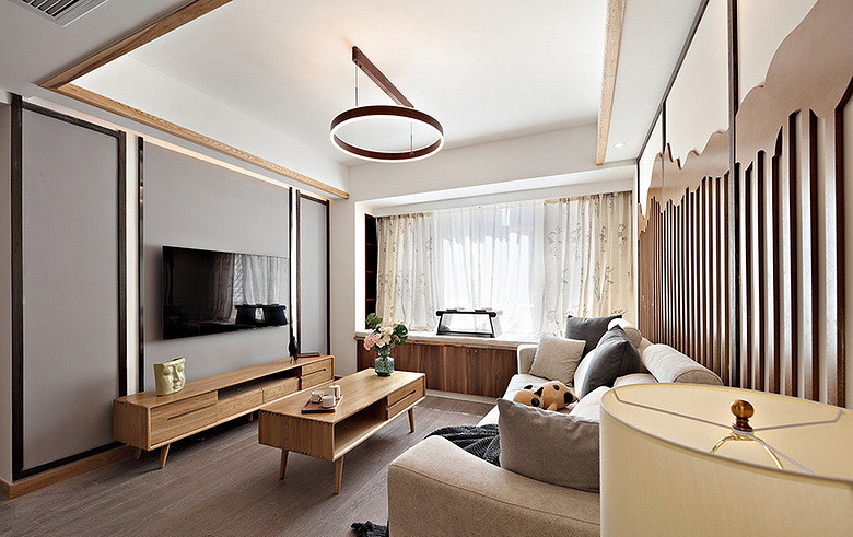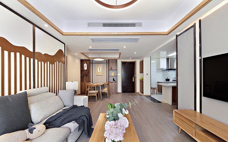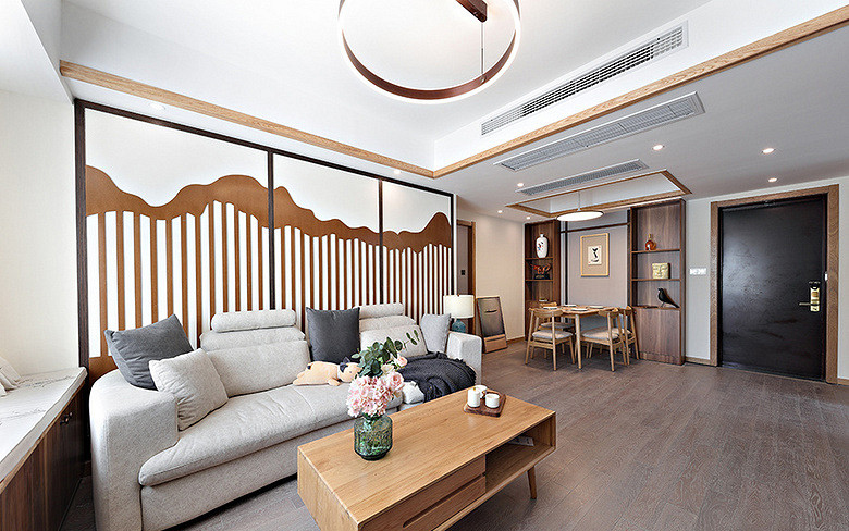 本案例面積102平米,戶型為三居室,裝修風(fēng)格為新中式風(fēng)格,在現(xiàn)代裝修風(fēng)格中融合進(jìn)了傳統(tǒng)家居的精華元素,既古典又時尚。