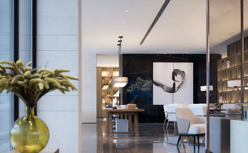 羅源中庚香山小鎮(zhèn)售樓處用現(xiàn)代東方的極簡(jiǎn)、以藝術(shù)打底一氣呵成的空間韻律,光與材質(zhì),陳設(shè)織物勾勒渲染出內(nèi)斂雋逸的地域之魂自然歸隱于山體之中,高貴,曼妙,安寧……
