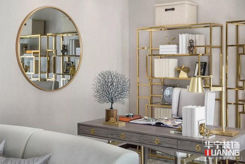 金色置物架打破了空間的沉悶,從雅致跳脫出輕奢感。