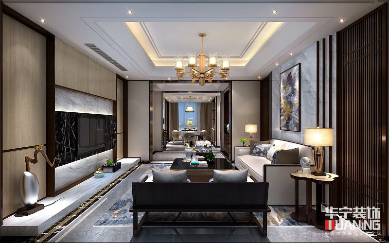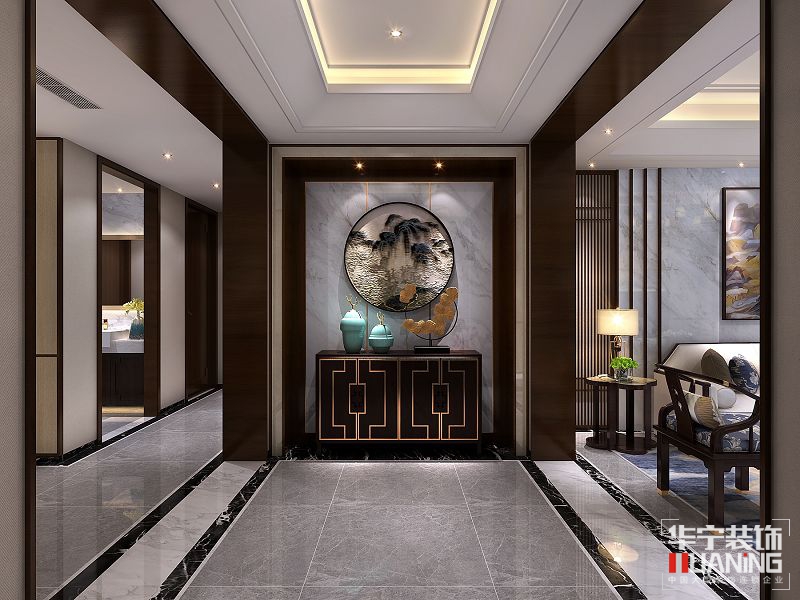 本案采用中式風(fēng)格的設(shè)計(jì),墻面大理石與木的結(jié)合,以內(nèi)斂沉穩(wěn)的傳統(tǒng)文化為出發(fā)點(diǎn),融入現(xiàn)代設(shè)計(jì)語言,為現(xiàn)代空間注入凝練唯美的中國古典情韻,讓中國風(fēng)有了另一種風(fēng)采。