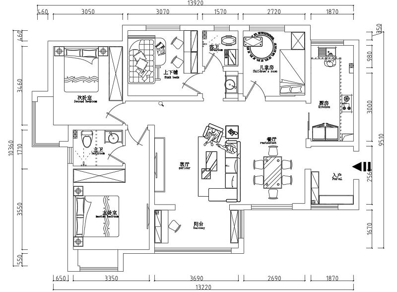 戶 型:平層(4房2廳1廚2衛(wèi)2陽臺1入戶)