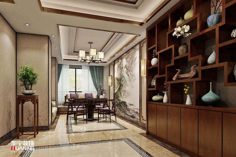 本案以作為中式風格,其特征是東方風格特有一種大隱隱于市的氣質(zhì),在花紅中,在綠映里,在棕調(diào)的木家具上,在水墨的點綴間……東方美學(xué)的感觸是細膩雅致的,當這種氣韻在空間中流淌,細節(jié)的精致恰似在張揚著不同與過去的摩登?,F(xiàn)代快節(jié)奏的工作生活,讓身體和精神都高度不自由,所以,我們需要給自己一方樂土,回歸自然,享受靜謐,感受生機。