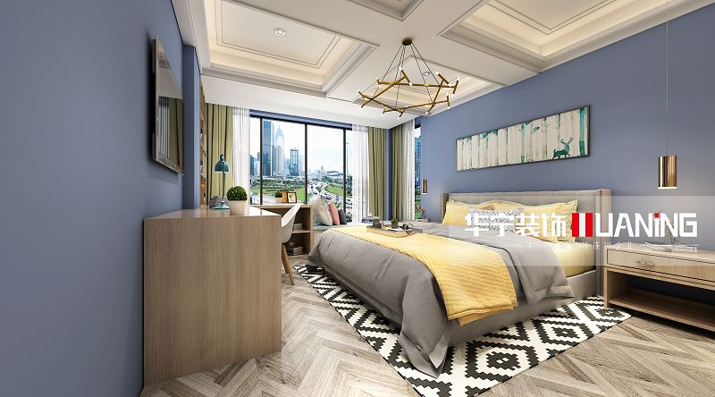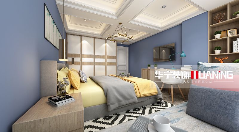 此房為剛需房,保留了原始的3房2衛(wèi)的結(jié)構(gòu)布置。由于頂樓,有部分外擴做陽光房的區(qū)域。增加了主臥衣帽間和餐廳飄窗位置。同時入戶增加了“北陽臺”,用于儲物和休閑使用。在材質(zhì)、色彩的搭配上,基本以簡單、明快顏色為主。因考慮男孩房需書桌朝東,以藍色為基調(diào),增加空間亮度和層次感。頂上有梁處進行了美化處理。其他墻面做為淺灰色裝飾,增加整體質(zhì)感。局部需要木飾面進行“軟化”處理,讓材質(zhì)拉開空間感。