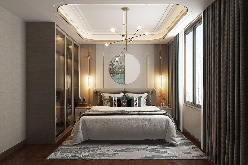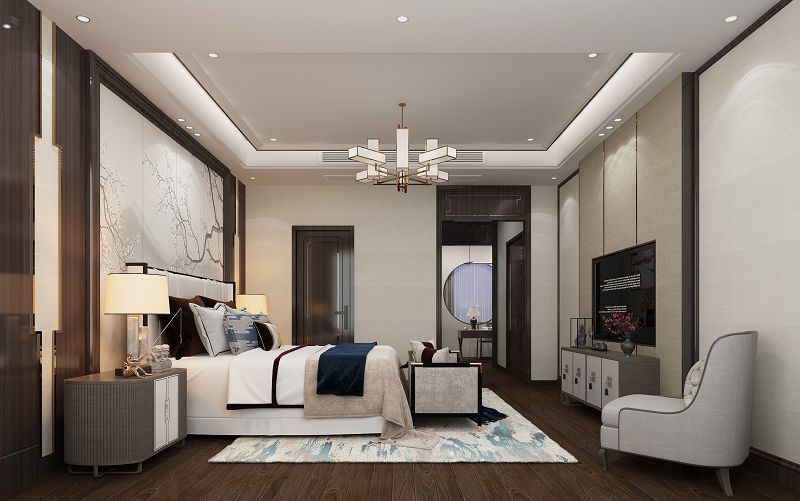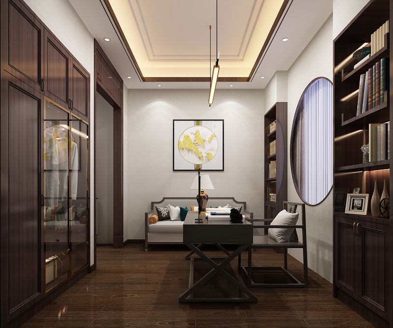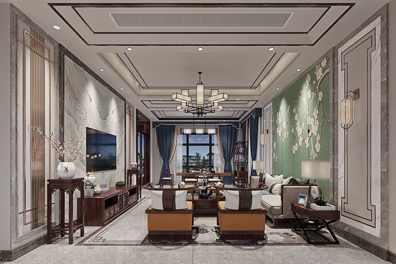 本案男業(yè)主非常儒雅,喜歡新中式??筒蛷d以干凈利落的線條和組織, 嚴(yán)謹(jǐn)?shù)哪旧?,很好的營(yíng)造了新中式氛圍,家具選擇上由于中式家具坐感不是特別舒適,所以在主沙發(fā)的選擇上我們用了棉麻布藝的新款款沙發(fā),跟中式的家具混搭,完美呈現(xiàn)了新中式感念。