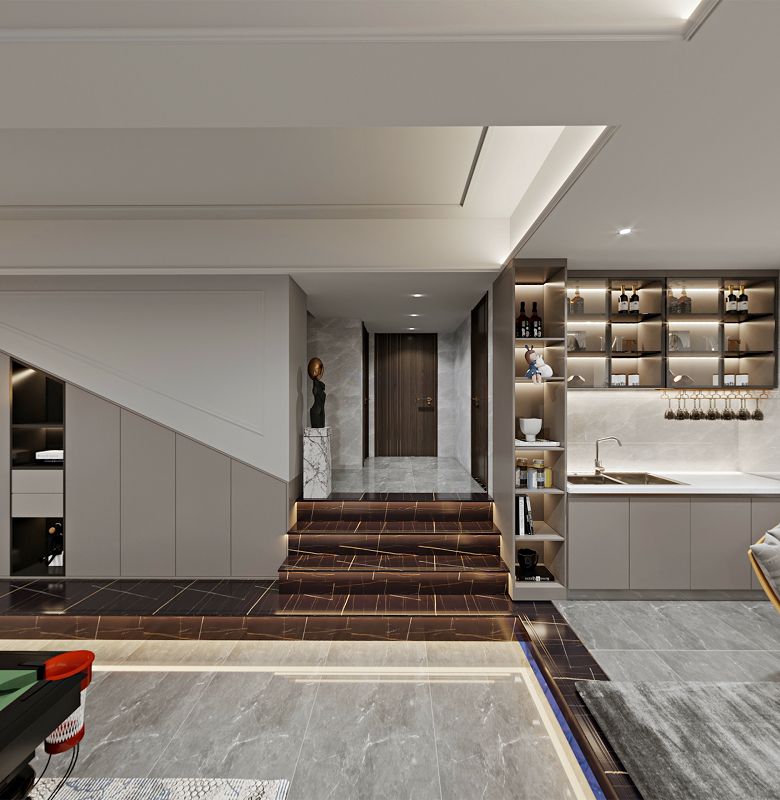 客戶是一個做餐飲的人士,也蠻懂生活,所以設(shè)計本身實際是根據(jù)客戶量身打造,地下室的臺球室及生活方式跟客戶同步,在追求設(shè)計的同時更滿足客戶的需求,細節(jié)處理粱和柱子完全融入設(shè)計,使設(shè)計本身更加具有整體性和生活感。