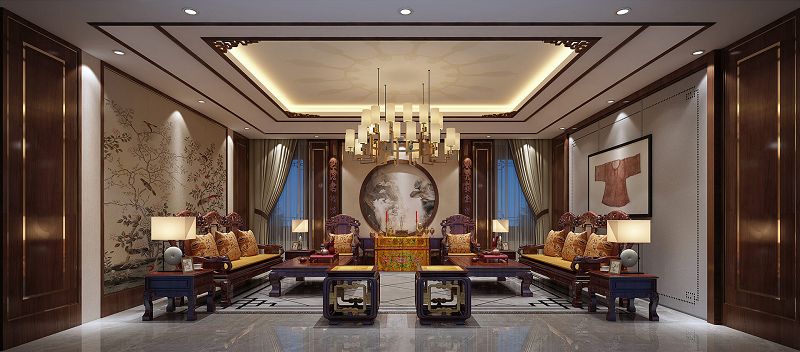 此作品位于湖南省常德市石門夾山森林公園風景區(qū)。作用萬畝面積,其室內四合院面積近2千方。此次作品,主要以百年老宅的寓意呈現(xiàn)給業(yè)主。一樓整體設計把傳統(tǒng)的結構形式通過重新設計組合,激進中透這現(xiàn)代。整體色感偏紅,意味著傳承永久。二樓,顯得更有具現(xiàn)代感,把中式和現(xiàn)代相結合。為了讓整體顯得不很呆板,在吊頂上用了不銹鋼條,加了活躍的色彩。這樣就以一種東方人的留白美學觀念控制著節(jié)奏,顯出大家風范。整體墻壁上的字畫無論數量還是內容都不在多,而在于它所營造的意境。