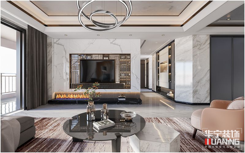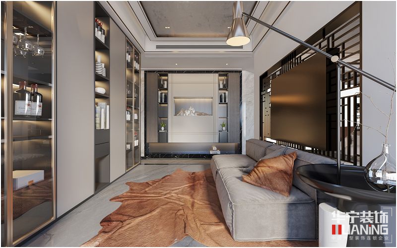 本案整體空間采用大面大理石上墻、極致金屬不銹鋼屏風(fēng)、簡(jiǎn)潔大氣的硬包與暖色整木相結(jié)合,同時(shí)搭配現(xiàn)代極簡(jiǎn)燈的高級(jí)質(zhì)感來拉升整個(gè)空間的品味與格調(diào),展示東方的文化禪味與意境,既可以彰顯中式儒雅之風(fēng),又給人以舒適現(xiàn)代的感受,寫意新中式經(jīng)典大宅之美。