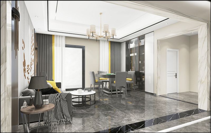 本方案設(shè)計風格為現(xiàn)代風格 顏色主要為黑白灰加木色搭配 地面采用800X1600大板瓷磚