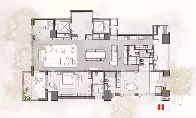 案例介紹:我們把生活空間的結(jié)構(gòu)還原為生活的本質(zhì),去除多余的、浮夸的裝飾圖案,用簡(jiǎn)單的系統(tǒng)來營(yíng)造生活場(chǎng)景。