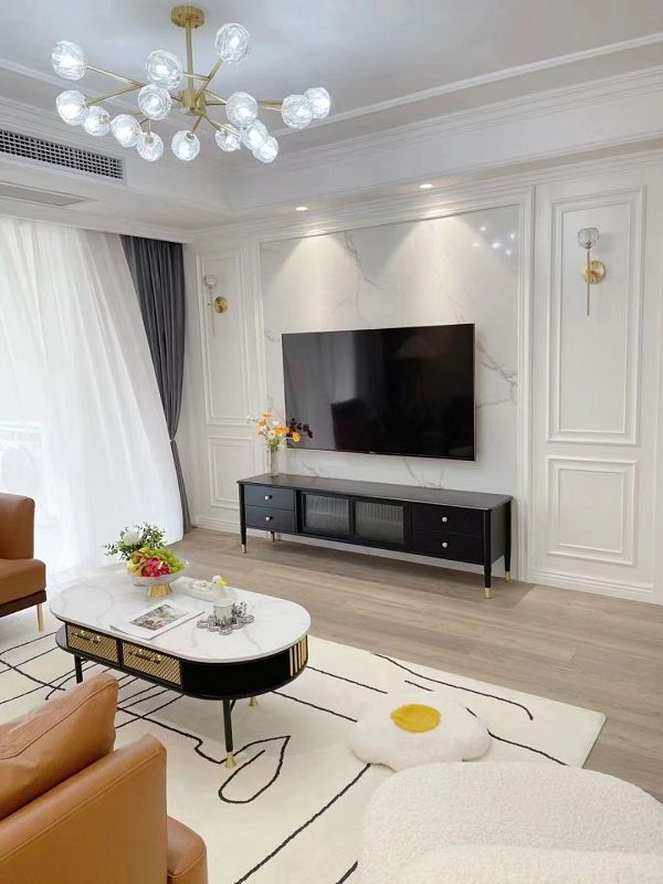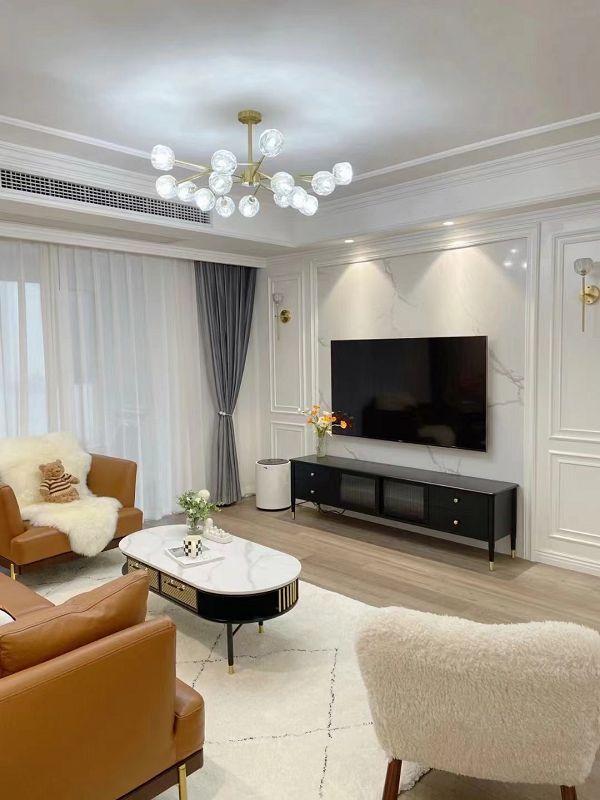 風(fēng)格介紹:設(shè)計(jì)師以舒適細(xì)致的人文關(guān)懷為主軸,規(guī)劃靈動(dòng)開放布局的同時(shí),用人文情感去圍造生活的儀式感,創(chuàng)造一個(gè)充滿可能性的舒適空間。本案結(jié)合現(xiàn)代美式,用了柔美的石膏線條點(diǎn)綴,也結(jié)合輕奢金屬元素,整體搭配出舒適大方的感覺(jué)