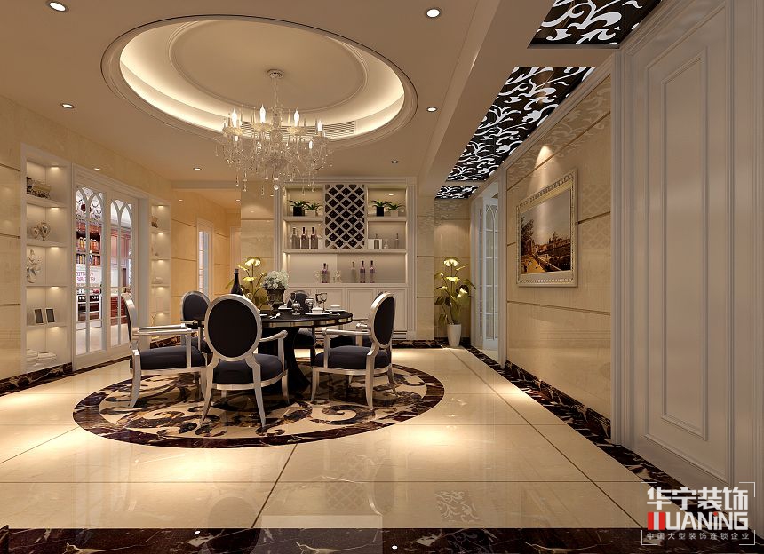本案例運(yùn)用了現(xiàn)代歐式風(fēng)格的手法,強(qiáng)調(diào)線形流動(dòng)的變化,將室內(nèi)雕刻工藝集中在裝飾和陳設(shè)藝術(shù)上,色彩華麗且用暖色調(diào)加以協(xié)調(diào),變形的直線與曲線相互作用以及貓腳家具與裝飾工藝手段的運(yùn)用,構(gòu)成室內(nèi)華美厚重的氣氛。它在形式上以浪漫主義為基礎(chǔ),常用大理石、華麗多彩的織物、精美的地毯、多姿曲線的家具,讓室內(nèi)顯示出豪華、富麗的特點(diǎn),充滿強(qiáng)烈的動(dòng)感效果。一方面保留了材質(zhì)、色彩的大致風(fēng)格,讓人感受盜傳統(tǒng)的歷史痕跡與渾厚的文化底蘊(yùn),同時(shí)又摒棄了過于復(fù)雜的肌理和裝飾,簡(jiǎn)化了線條?,F(xiàn)代歐式風(fēng)格,更像是一種多元化的思考方式,將懷古的浪漫情懷與現(xiàn)代人對(duì)生活的需求相結(jié)合,兼容華貴典雅與時(shí)尚現(xiàn)代,反映出后工業(yè)時(shí)代個(gè)性化的美學(xué)觀點(diǎn)和文化品位。