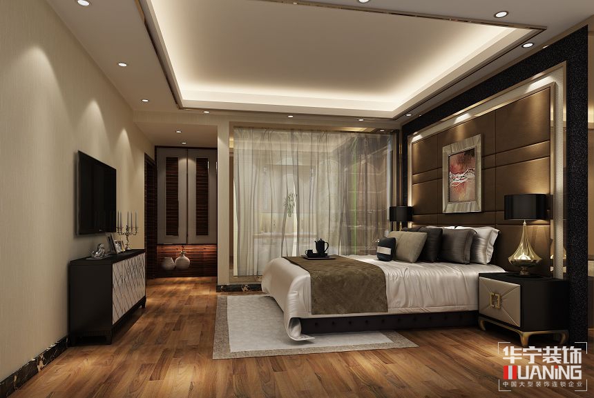 設(shè)計(jì)理念:奢華里蘊(yùn)含著尊貴,沉穩(wěn)中彰顯出活力。主要運(yùn)用材質(zhì):軟包,硬包,玫瑰金不銹鋼