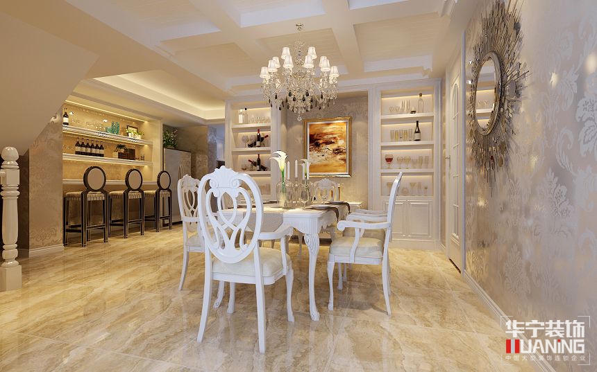 簡(jiǎn)約的歐式餐廳裝修,采用了一些溫和的色彩,就讓人溫馨而別致。餐廳采用了黃色和白色的搭配,讓家具更有古典的高貴與優(yōu)雅。加上室內(nèi)燈光的效果,讓餐廳空間充滿氛圍,客廳的裝修運(yùn)用了大量的黃色墻紙來(lái)打造,展現(xiàn)出古典的奢華感。而客廳中的地毯、沙發(fā)的顏色以及精湛的制作工藝,具有婉轉(zhuǎn)、柔和的特色。加上布藝窗簾大點(diǎn)綴,使得客廳更加華麗精巧的貴族氣質(zhì)。