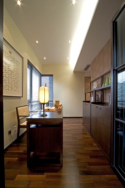 主要采用硬朗簡(jiǎn)介的直線條空間具有層次感。既使得中式家具古典、質(zhì)樸的內(nèi)涵顯現(xiàn),又符合現(xiàn)代人追求的時(shí)尚感、實(shí)用性。沙發(fā)背景采用水墨畫形式來加以修飾,使得結(jié)合中式風(fēng)格的家具突出明顯。
