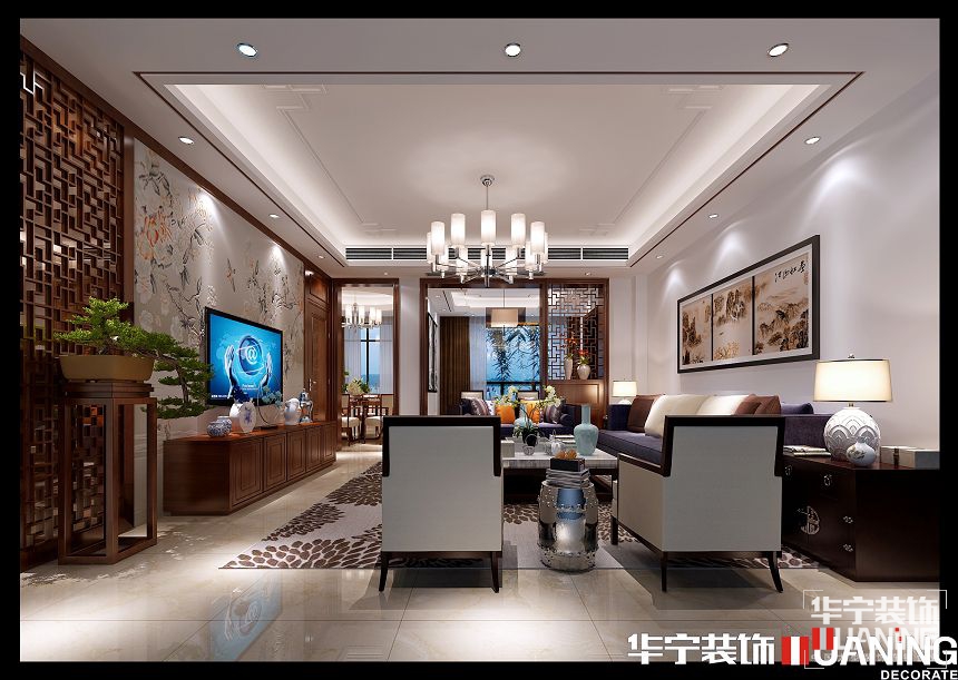 本案例以“雅”為思想,打造一種傳統(tǒng)文化的 深邃意境與博大精煉的東方文化魅力。客廳采用了大塊鏡面,加深了客廳的寬度,使空間產(chǎn)生了虛實變化,加入這些現(xiàn)代的元素,進(jìn)而體現(xiàn)了古典和現(xiàn)代的完美結(jié)合。利用入戶玄關(guān)區(qū)分客廳及餐廳的獨(dú)立,增加了空間回轉(zhuǎn)性,讓家有了一份溫暖與堅實,為業(yè)主營造一處經(jīng)典、低調(diào)雅致韻味的中式居所。