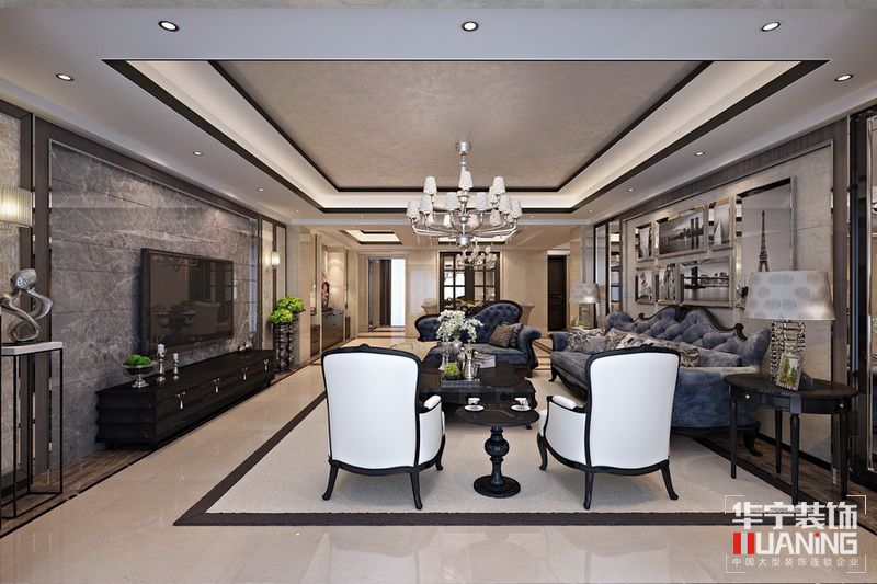 客廳作為待客區(qū)域,一般要求簡(jiǎn)潔明快,同時(shí)裝修較其它空間要更明快光鮮,通常使用大量的石材和木飾面裝飾;美國(guó)人喜歡有歷史感的東西,這不僅反映在軟裝擺件上對(duì)仿古藝術(shù)品的喜愛(ài),同時(shí)也反映在裝修上對(duì)各種仿古墻地磚、石材的偏愛(ài)和對(duì)各種仿舊工藝的追求上??傮w而言,美式田園風(fēng)格的客廳是寬敞而富有歷史氣息的。