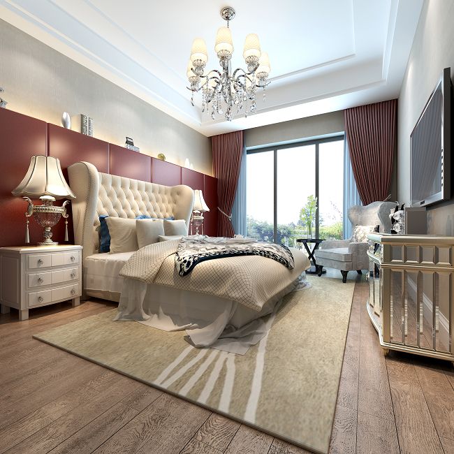 通過和業(yè)主的交流,業(yè)主是即將結(jié)婚的新人,對功能的需求強(qiáng)。選擇簡約風(fēng)格,整體感覺比較穩(wěn)重,以白色系為主調(diào)。臥室選擇一點(diǎn)喜慶紅色的顏色,這樣既不與整體風(fēng)格相沖突,又給人眼前一亮的感覺。因?yàn)楸景缚臻g比例面積比較大,為了既不使房間顯得空曠又能夠與整個設(shè)計相呼應(yīng),所以在選擇顏色方面主色系是采用暖色系家具作為點(diǎn)綴。淡雅的米色系既能使房間感覺舒適、溫馨,也能讓其充滿生活和活力,再搭配利落的裝飾柜和精致的吊燈,多了幾分雅趣。