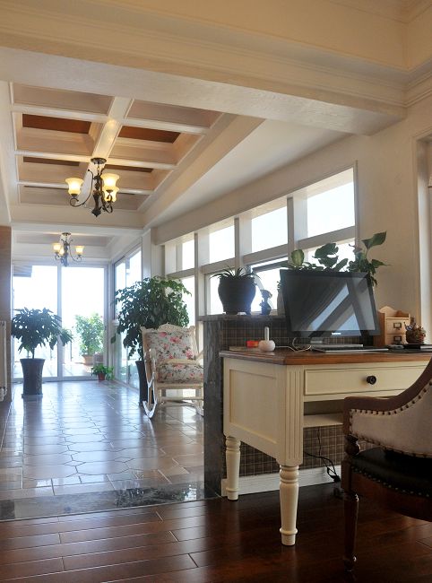 本案采用簡(jiǎn)約美式風(fēng)格,雖然沒有歐式的精致,也沒有地中海的風(fēng)情,但是由于美式?jīng)]有太多造作的裝飾,不經(jīng)意間傳遞出人們所追求的自由自在,隨意不羈的生活方式。浪漫溫馨,給人帶來一種清新、安靜之美。優(yōu)質(zhì)的設(shè)計(jì)感使質(zhì)感蔓延、自然純凈。淡雅的藍(lán)、純凈的象牙白作為空間色系的主調(diào),以簡(jiǎn)約精致的結(jié)構(gòu)為基底的一個(gè)空間??臻g的色調(diào)搭配顯得主人有那么一絲絲俏皮的新意。然而空間中選用了看似很清雅的色彩構(gòu)成語言去碰撞紅橡古典家具精致氛圍,這兩種截然不同的方式融合在了一起,使人感覺到時(shí)間從肩頭劃過。冷暖色調(diào)交映出主人的自由氣質(zhì),帶來溫潤和暖的美意。淡淡的書墨香混著陽光的味道,這里是屬于自己的一番天地,安顧當(dāng)下,不假外求。