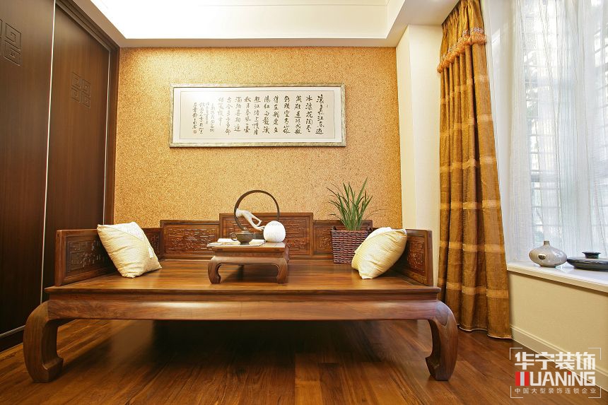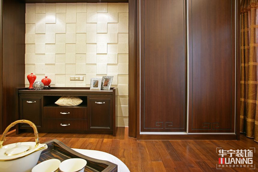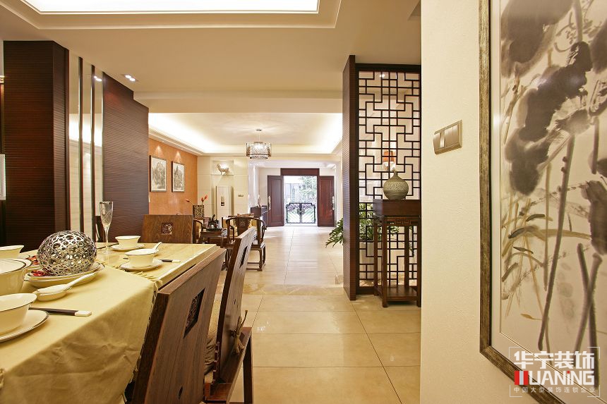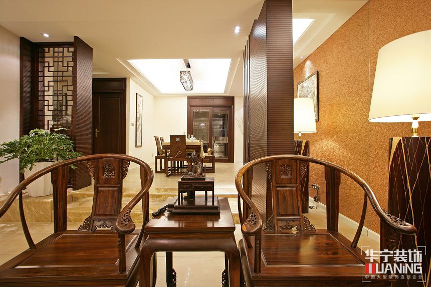 中國傳統(tǒng)的室內(nèi)設計融合了莊重優(yōu)雅雙重氣質(zhì)。中式風格更多的利用了后現(xiàn)代手法,把傳統(tǒng)的結(jié)構(gòu)形式通過重新設計組合以另一種民族特色的標志符號出現(xiàn)。例如,廳里擺一套明清式的紅木家具,墻上掛一幅中國山水畫等。