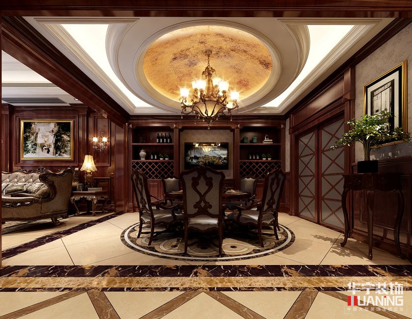 本案例為雙排結(jié)構(gòu)(美式風(fēng)格),美式風(fēng)格,顧名思義是來自于美國的裝修和裝飾風(fēng)格。是殖民地風(fēng)格中最著名的代表風(fēng)格。美式家居風(fēng)格的這些元素也正好迎合了時下的文化資產(chǎn)者對生活方式的需求,即:有文化感、有貴氣感,還不能缺乏自在感與情調(diào)感。本案以原木護(hù)墻和墻紙為主要材料,在用金箔和成品玉石搭配,即簡潔大方又不失貴氣自在感與情調(diào)感。