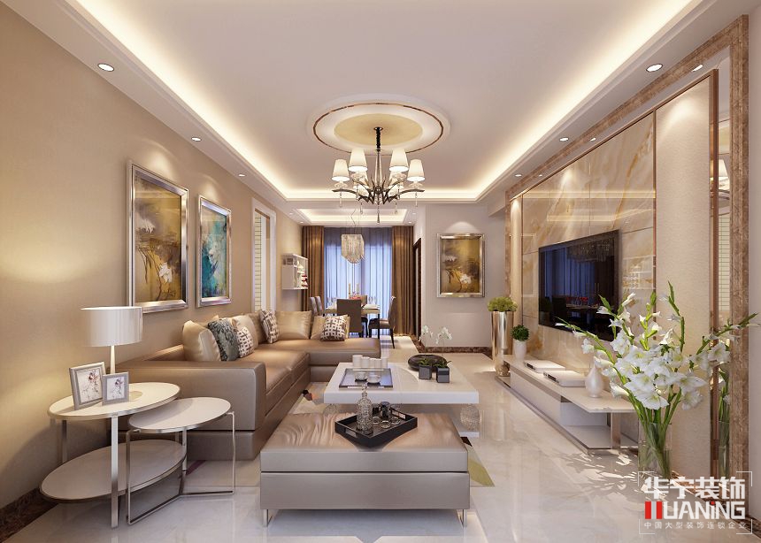 整體以米色、淺咖色、為主,白色、金色等作為點(diǎn)綴色。家具多采用中性色且質(zhì)感的皮質(zhì)及亞光金屬為主要材質(zhì),搭配少量的木質(zhì)飾品,使硬軟結(jié)合,在舒適同時也體現(xiàn)了時尚。