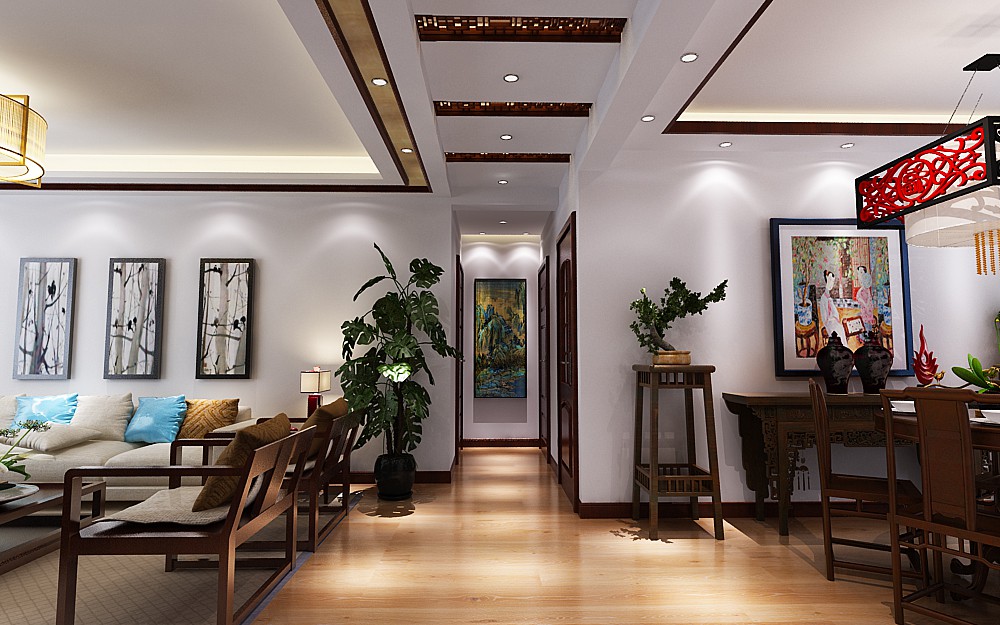 空間上講究層次,多用隔窗、屏風(fēng)來(lái)分割,用實(shí)木做出結(jié)實(shí)的框架,以固定支架,中間用欞子雕花,做成古樸的圖案。門窗對(duì)確定中式風(fēng)格很重要,因中式門窗一般均是用欞子做成方格或其它中式的傳統(tǒng)圖案,用實(shí)木雕刻成各式題材造型,打磨光滑,富有立體感。天花以木條相交成方格形,上覆木板,也可做簡(jiǎn)單的環(huán)形的燈池吊頂,用實(shí)木做框,層次清晰,漆成花梨木色。家具陳設(shè)講究對(duì)稱,重視文化意蘊(yùn),木雕畫以壁掛為主,更具有文化韻味和獨(dú)特風(fēng)格,體現(xiàn)中國(guó)傳統(tǒng)家居文化的獨(dú)特魅力。配飾擅用字畫、古玩、卷軸、盆景,精致的工藝品加以點(diǎn)綴,更顯主人的品位與尊貴。