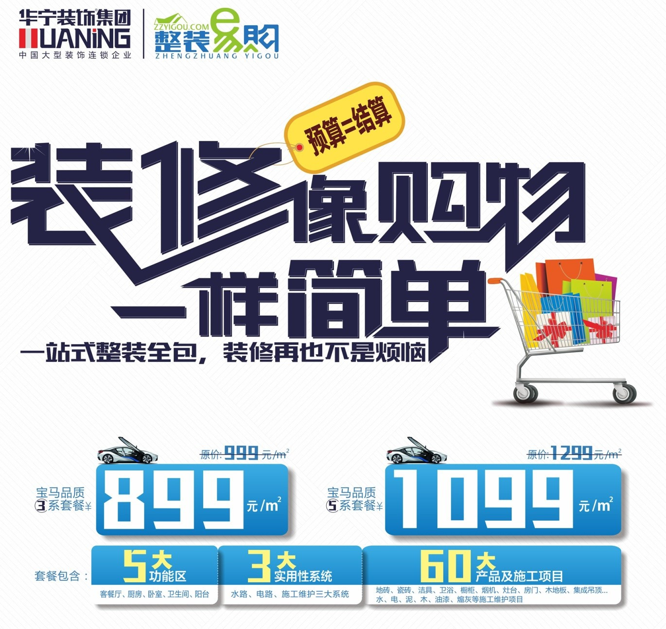 裝修黃金季來襲,作為年度熱點(diǎn)的315更是聚焦了所有家居消費(fèi)者的視線。華寧裝飾旗下品牌整裝易購借此機(jī)會,感謝廣大消費(fèi)者對華寧裝飾品牌的大力支持,于2016年3月15日-4月15日舉辦主題為“裝修像購物一樣簡單 (結(jié)算=預(yù)算)”大型活動,為配合此次活動,在寶馬3/5系套餐基礎(chǔ)上,推出簽單就送禮,趣味抽獎,訂金贈送電器等活動。