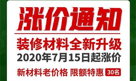查看詳情銅線一路飆升,材料廠家又漲價了,2020年下半年裝修漲價已成定局!為了更好地踐行“真才實料造精品”,華寧裝飾裝修材料全面升級升級后的材料均采用行業(yè)尖端產(chǎn)品,豪華頂配,臻品質(zhì),更環(huán)保!