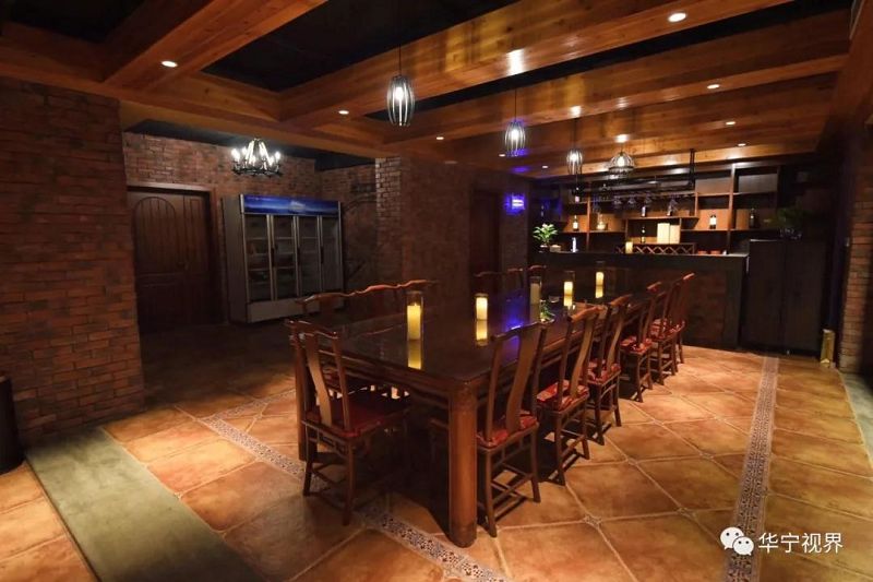 褐紅色是整個酒莊的主調(diào),從木質(zhì)的地板、粗糙的磚墻,到錯落有致的天花、極富年代感的鹿角燈,都給人一種悠然、古樸的鄉(xiāng)村田園氣質(zhì)。