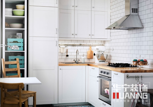 廚房的使用面積要適中,過大無疑浪費,而過小則擁擠不堪,合理面積應(yīng)一般為為 10平方米左右。還要保證廚房空間的自然采光和合理通風(fēng)。廚房若面積夠大,可放置小型餐桌,這樣就能兼作飯廳使用,無須另覓空間作為飯廳,餐桌下可放置地毯以作分隔空間之用。廚房面積若是小,則應(yīng)該注意收納。