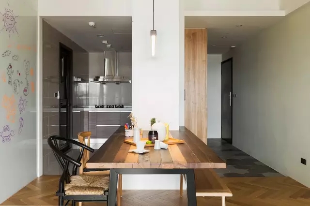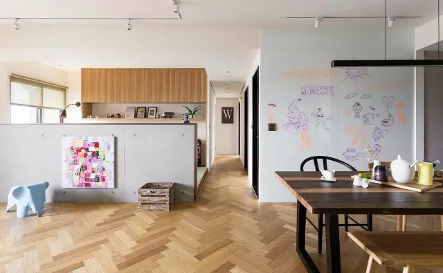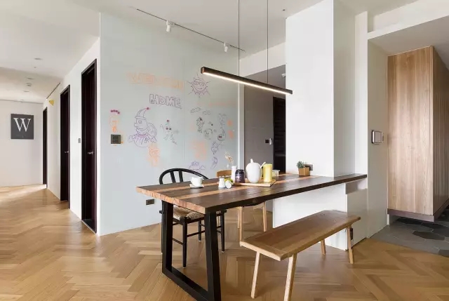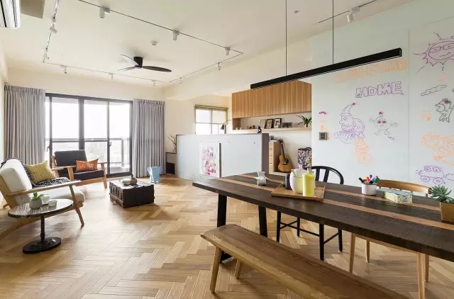 背景的白板是給孩子準(zhǔn)備的繪畫(huà)墻