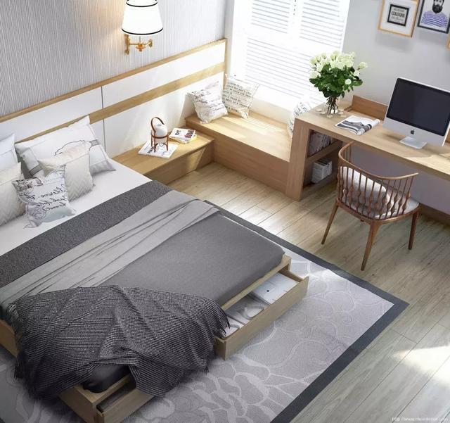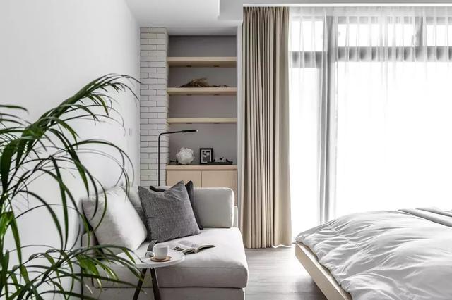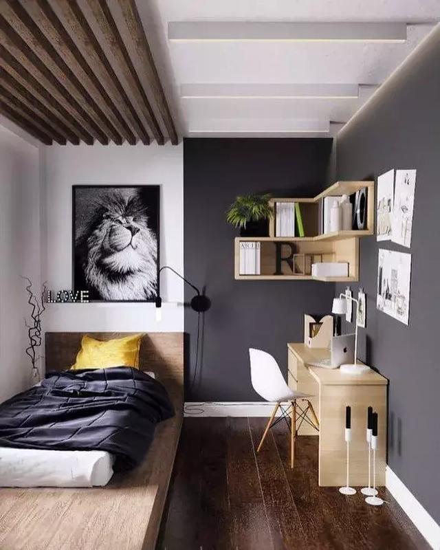臥室里的墻角也可以充分利用,如果房間較小,那可以在床頭角落的墻上設(shè)置一些擱板,既不占太多空間,又能夠幫你收藏一些物品。